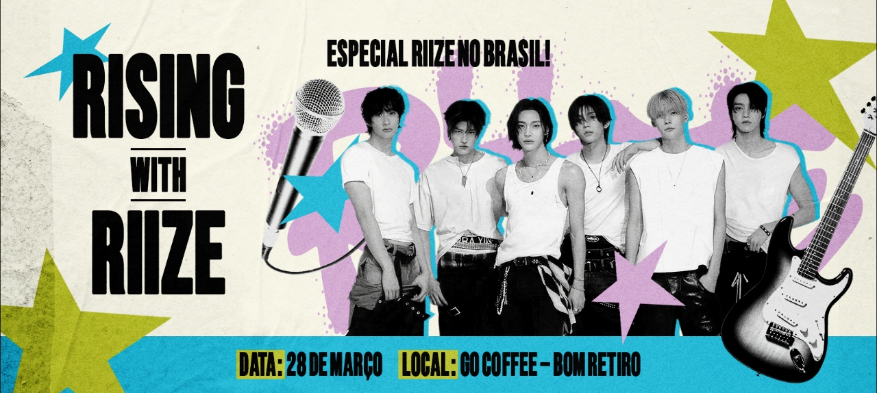 No dia 28 de março, das 14h30 ás 16h30, a Go Coffee do Bom Retiro recebe o Rising With RIIZE, um evento temático pensado para reunir fãs do grupo em um ambiente acolhedor e cheio de detalhes inspirados no RIIZE.