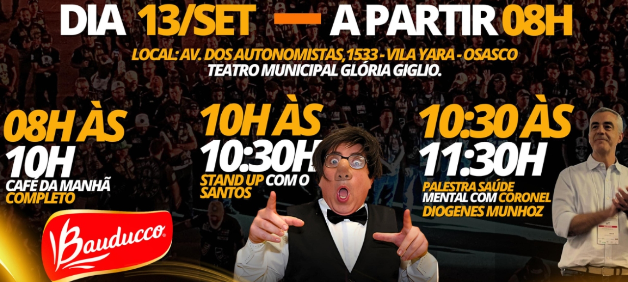 10h30 às 11h30 → Palestra sobre Saúde Mental com o Coronel Diógenes Munhoz.