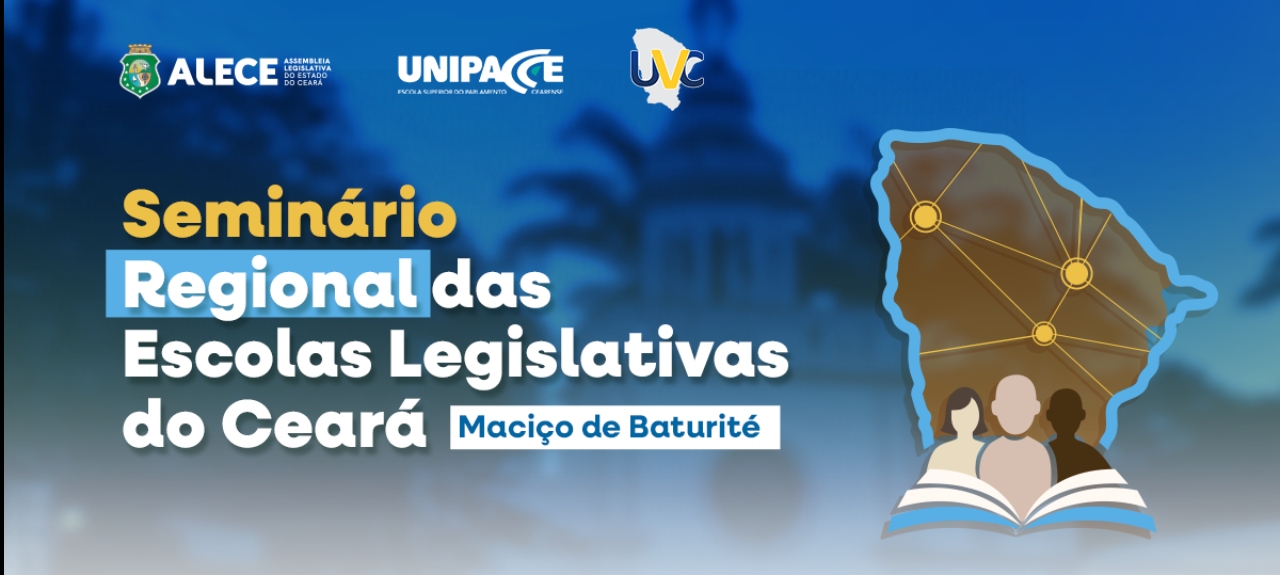 A Assembleia Legislativa do Estado do Ceará, por meio da Escola Superior do Parlamento Cearense – Unipace, tem o prazer de convidar Prefeitos, Presidentes de Câmaras, Vereadores, Assessores, Servidores Públicos, Educadores e membros da Sociedade Civil da Região do Maciço de Baturité para o Seminário Regional das Escolas Legislativas.