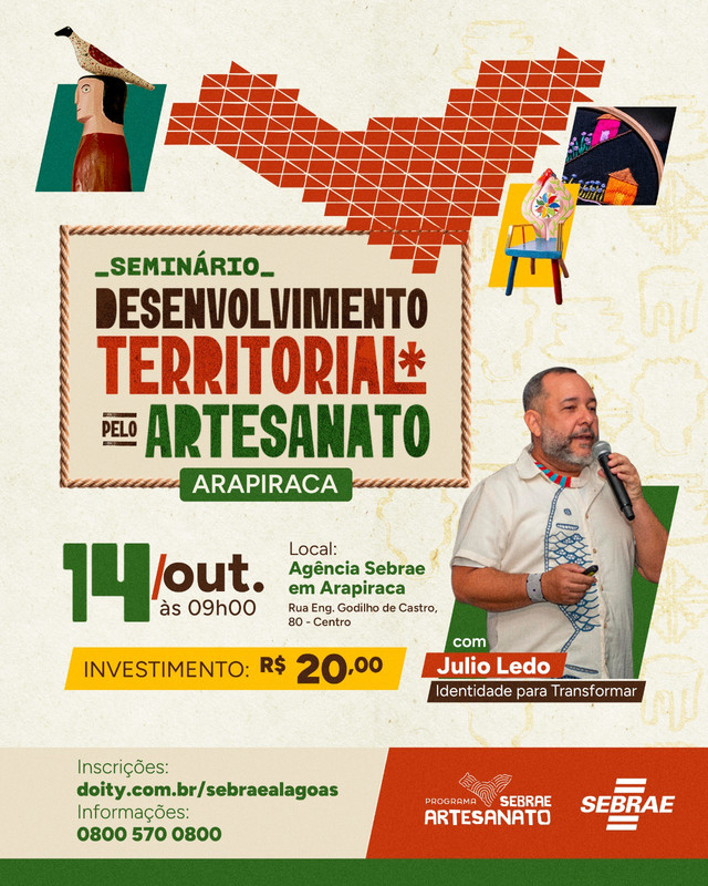 Seminário para artesãos de Alagoas sobre como fortalecer o artesanato em nossa região. Objetivo é aprender, trocar ideias e descobrir novas oportunidades para o seu negócio.