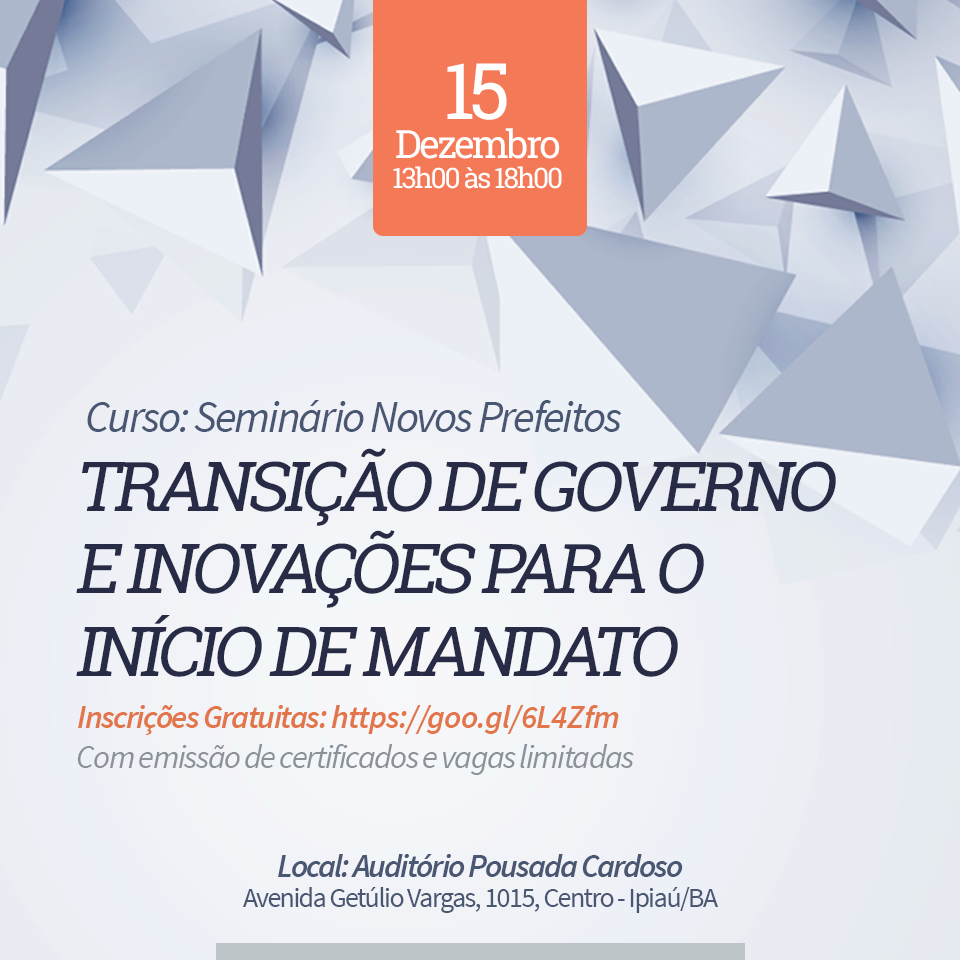 O Grupo Êxito fimou como sua principal meta a qualidade em desenvolver atividades sistematicas de Controle Interno e Tecnologia de Sistemas voltados para gestão pública. Ciente dos desafios que os novos gestores em inicio de mandato enfretaram, propós a realização de um seminário que transmita os conhecimentos necessários para a transmissão de Governo e as inovações no inicio da nova gestão.