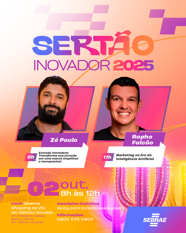 O Sertão Inovador está chegando ao coração de Delmiro Gouveia! Um evento especial que reúne grandes nomes do empreendedorismo, marketing e da inovação para fomentar a cultura empreendedora e inspirar profissionais e entusiastas da região.