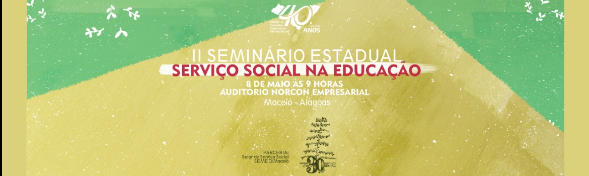 O II Seminário Estadual Serviço Social na Educação integra as ações do CRESS Alagoas para o exercício 2023 e tem como objetivo reafirmar a defesa do trabalho de assistentes sociais a partir do fortalecimento de sua atuação profissional na Política de Educação. Importante salientar que a atividade está articulada com os marcos legais da profissão, como a Lei 13.935/2019 que dispões sobre a inserção de assistentes sociais e psicólogos na educação básica, a Lei de Regulamentação da Profissão, Lei nº 8.662/1993, Política Nacional de Fiscalização – PNF (Resolução CFESS nº 512/2007)e o Código de Ética do/a assistente social instituído pela Resolução CFESS 273/93.