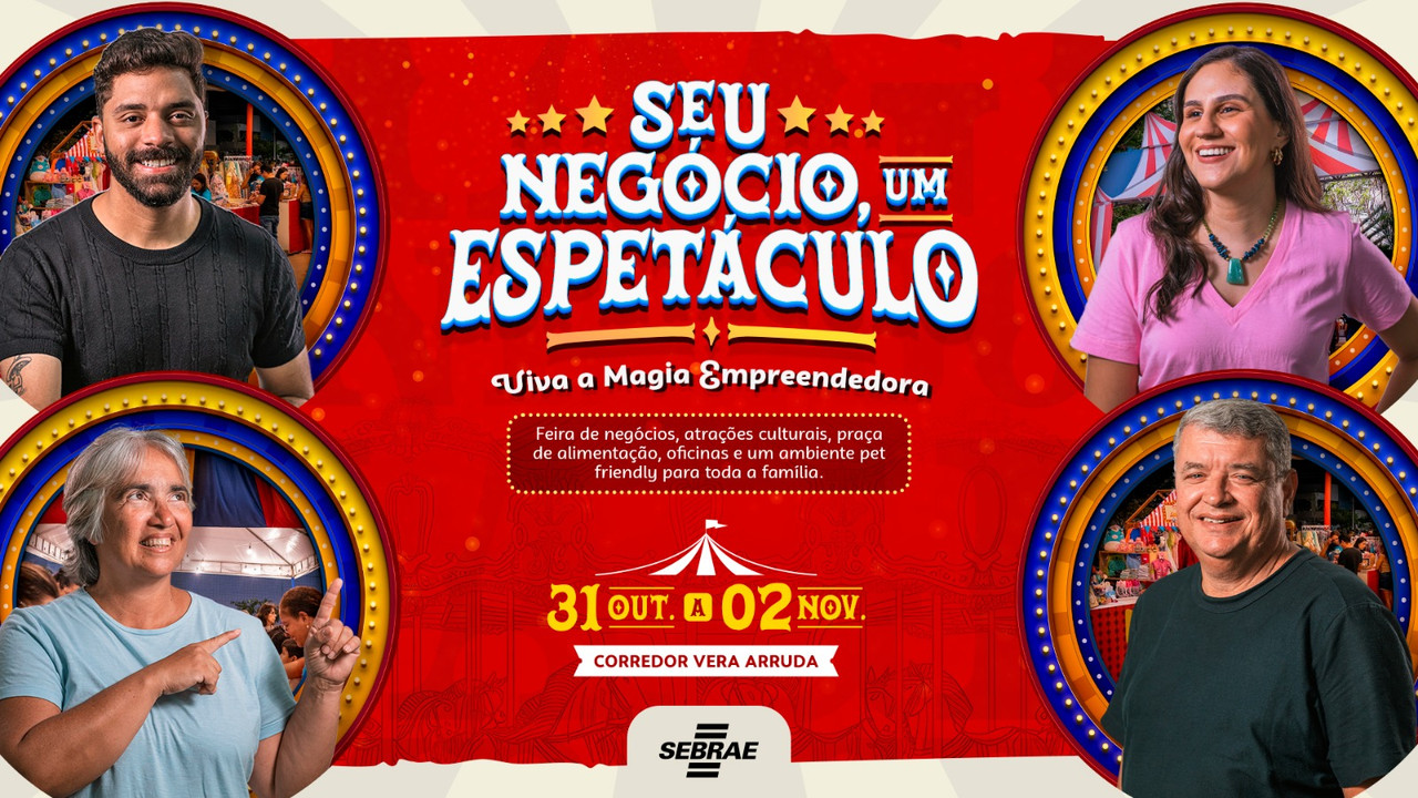 No período de 31/10 a 02/02 o Sebrae realizará a 4ª edição do evento Seu Negócio, Um Espetáculo, das 17h às 22h, no Corredor Vera Arruda.