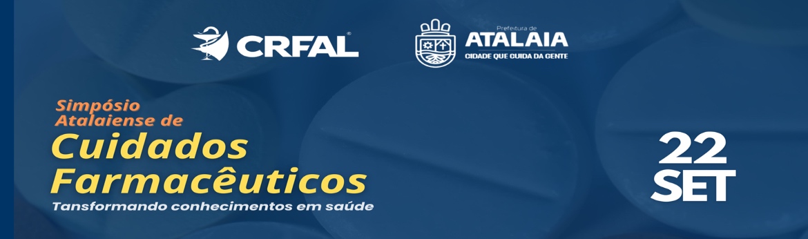 O Conselho Regional de Farmácia de Alagoas (CRF-AL), em parceria com a Prefeitura de Atalaia, convida farmacêuticos, estudantes e profissionais da saúde para o Simpósio Atalaiense de Cuidados Farmacêuticos, que acontecerá no dia 22 de setembro, na ASMALU / Secretaria de Cultura de Atalaia, localizada na Rua Marechal Floriano Peixoto, 125.