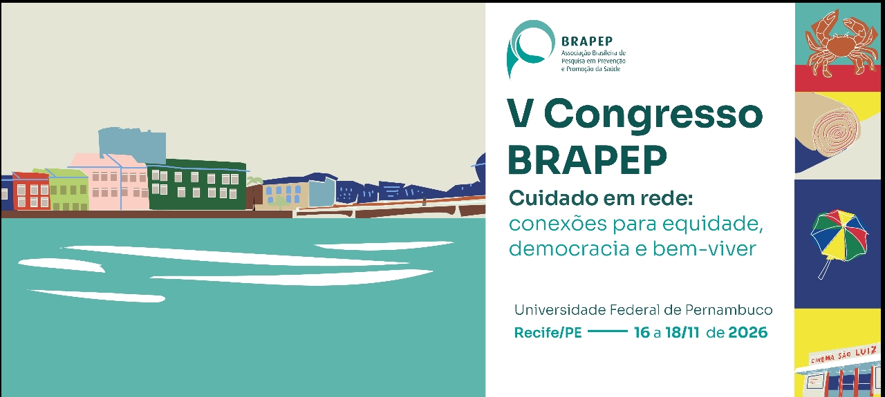 O V Congresso da Associação Brasileira de Pesquisa em Prevenção e Promoção da Saúde (BRAPEP) convida você a compor um espaço vivo de encontros, trocas e construção coletiva de saberes e práticas. Com o tema “Cuidado em rede: conexões para equidade, democracia e bem-viver”. O evento acontecerá de 16 a 18 de novembro de 2026, em formato presencial, em Recife, e online, ampliando possibilidades de participação e diálogo.