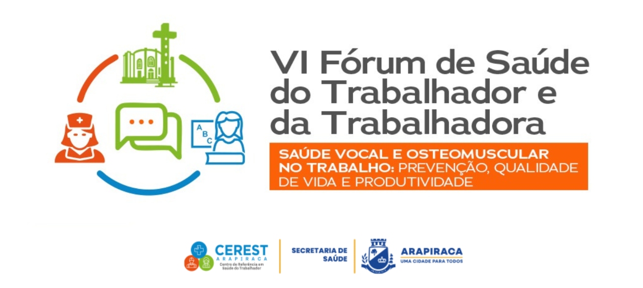 O CEREST Arapiraca tem a honra de convidar os Trabalhadores e Trabalhadoras para participarem do VI Fórum em Saúde do Trabalhador, evento de grande relevância no cenário da Política de Saúde do Trabalhador, ao qual faz parte da Programação Anual de Saúde do CEREST. Neste ano, teremos como tema principal: “SAÚDE VOCAL E OSTEOMUSCULAR NO TRABALHO: PREVENÇÃO, QUALIDADE DE VIDA E PRODUTIVIDADE”.