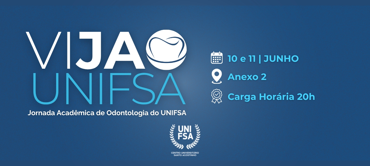 O Centro Universitário Santo Agostinho, por meio do curso de Odontologia, promove a VI Jornada Acadêmica de Odontologia do UNIFSA, que será realizada nos dias 10 e 11 de junho de 2026, no auditório do Anexo 2 da instituição, consolidando-se como um importante espaço de integração, atualização científica e fortalecimento da formação profissional na área da saúde.