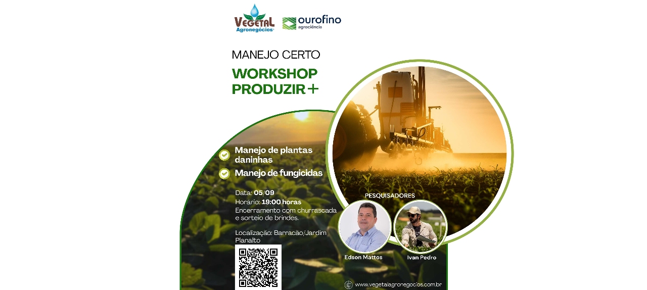 Durante o evento, especialistas abordarão temas fundamentais como o manejo de plantas daninhas e o uso estratégico de fungicidas, trazendo informações práticas e atualizadas para o dia a dia no campo.