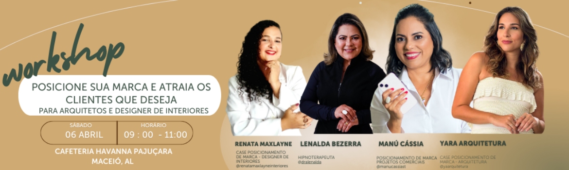 O workshop é um evento presencial para falar sobre como posicionar sua marca para atrair os clientes certos e alavancar o seu negócio. Ele foi fundado pela Designer de Interiores Manu Cássia, criadora do método APE, com três pilares de trabalho, o Ambiente, Posicionamento de Marca e Experiência do Cliente.