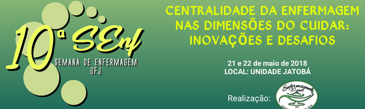 Atualmente, a Enfermagem ocupa um significativo espaço no mercado profissional, com grandes feitos e desafios, estando aberta e conectada aos avanços científicos e tecnológicos e às novas práticas e oportunidades que surgiram nas últimas décadas. Nesse momento histórico e político de inovações em que nos inserimos, convidamos todos os alunos de graduação e de cursos técnicos em Enfermagem, professores e profissionais de enfermagem para participarem conosco desse evento, que representa um espaço de discussão ética e acadêmica-científica nas diferentes dimensões da enfermagem. Além disso, a semana de Enfermagem constitui um evento tradicional do curso e está em sua décima edição, comemorando os 10 anos do curso de enfermagem em Jataí.