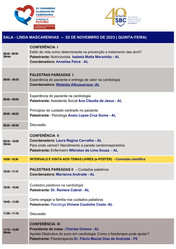 XV CONGRESSO ALAGOANO DE CARDIOLOGIA - V JORNADA MULTIDISCIPLINAR EM CARDIOLOGIA